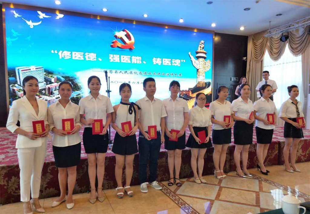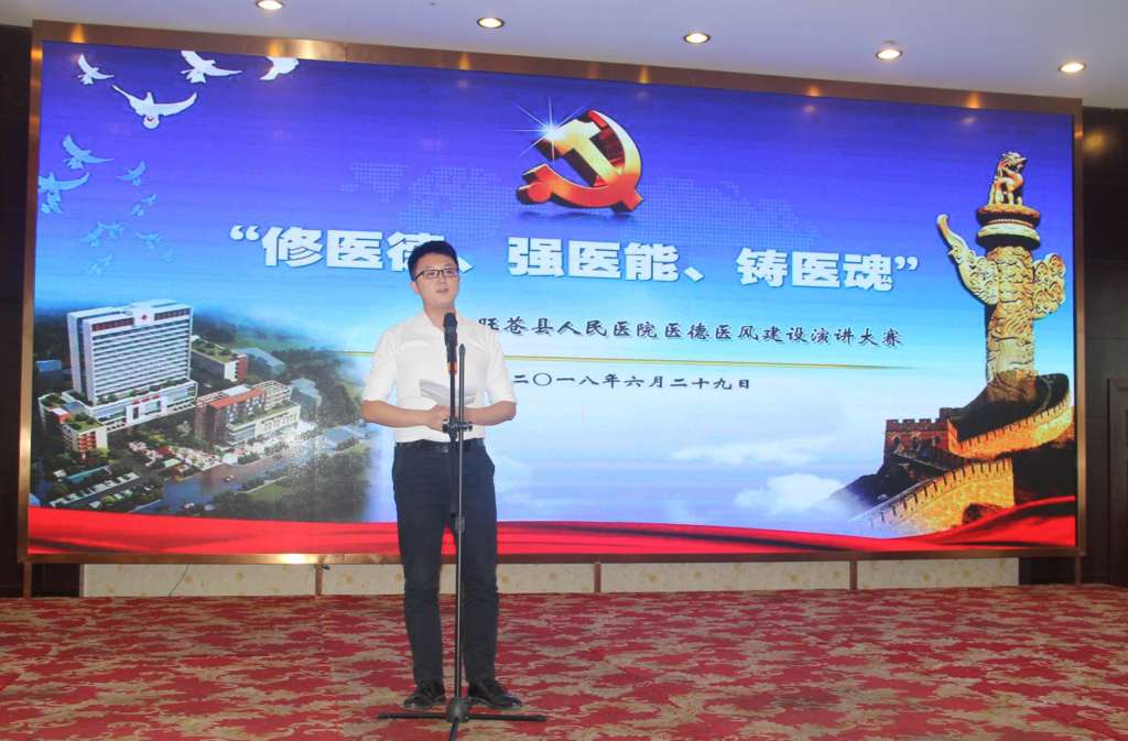 为进一步贯彻落实“十九大”精神,认真落实市委、县委关于“作风纪律深化年”活动部署要求,推动医院思想政治工作建设,全面激发广大干部职工的责任感、使命感和工作热情。6月29日下午,我院在良宇酒店六楼成功举办了“修医德、强医能、铸医魂”为主题的医德医风建设演讲比赛。 本次演讲比赛邀请了院总支书记、院长赵思军,副院长郭厚信、陈兵,院总支副书记杨文中,工会主席余北源出席演讲比赛并担任评委。